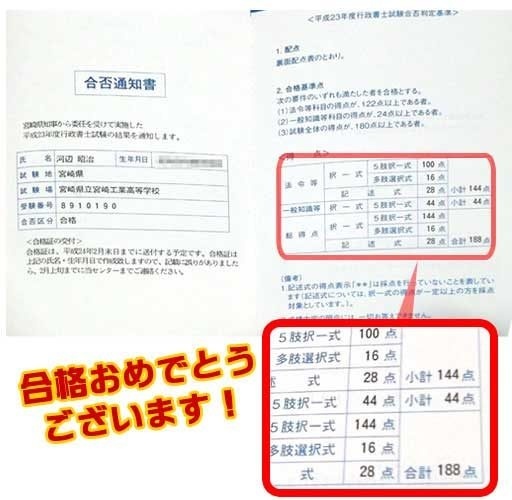 「合格」の文字が見えた時、思わず「やった」と声を上げてしまいました。長い受験生活にピリオドを打つことができました。家族または友人にもかなり迷惑をかけた分、少しでも行政書士としてお役に立ちたいです。