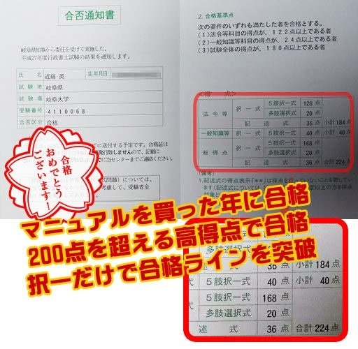 平成27年の2月位にインターネットで坂庭先生、石井先生の行政書士一発合格センターの広告をみて、その中で 「資格予備校で何年も勉強しても合格できなかった人がマニュアルを購入し、その年に合格した。」という文字が目に入り、私自身とその状況と非常に良く似ていたので、受験勉強の参考にしてみようと気軽に購入したのがきっかけになります。