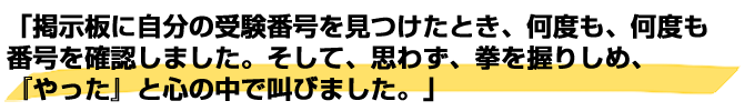 掲示板に自分の受験番号を見つけたとき、何度も、何度も番号を確認しました。