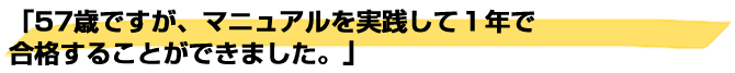 57歳ですが、マニュアルを実践して1年で合格することができました。