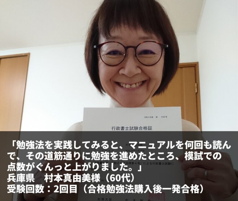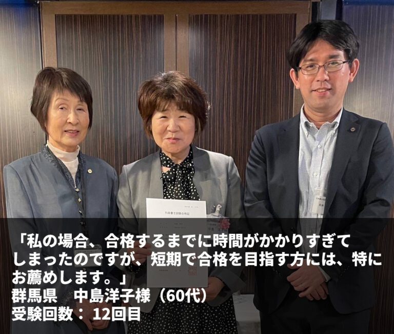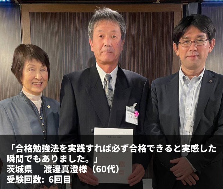 『合格勉強法を実践すれば必ず合格できると実感した瞬間でもありました。』 茨城県 渡邉真澄様(60代) […] -