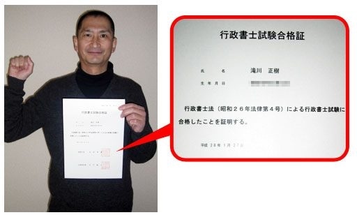 平成27年度合格者 兵庫県 滝川 正樹様(50代) 受験回数:8回目 -