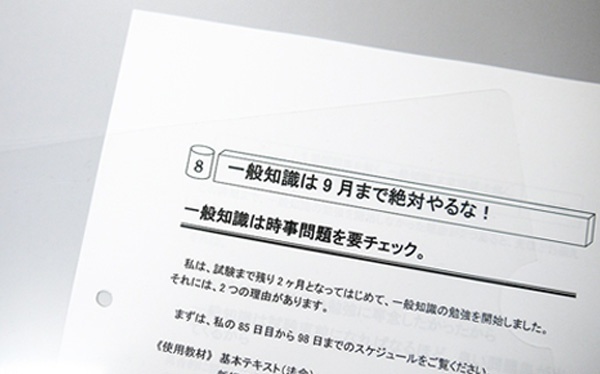クリアファイルに入れて必要な章だけ持ち歩けますので、カバンにも入れられますし、持ち歩くにも邪魔になりません。