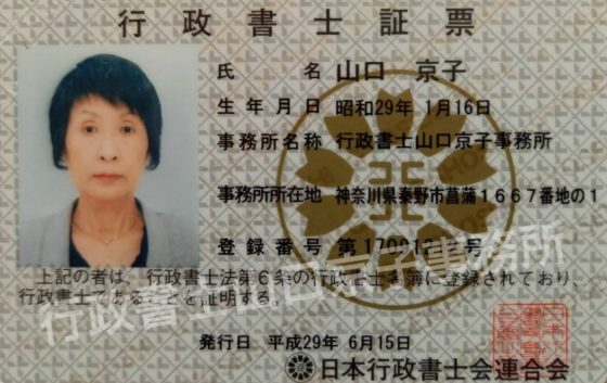 ・2017年6月、神奈川県秦野市の自宅にて「行政書士山口京子事務所」を開業しました。