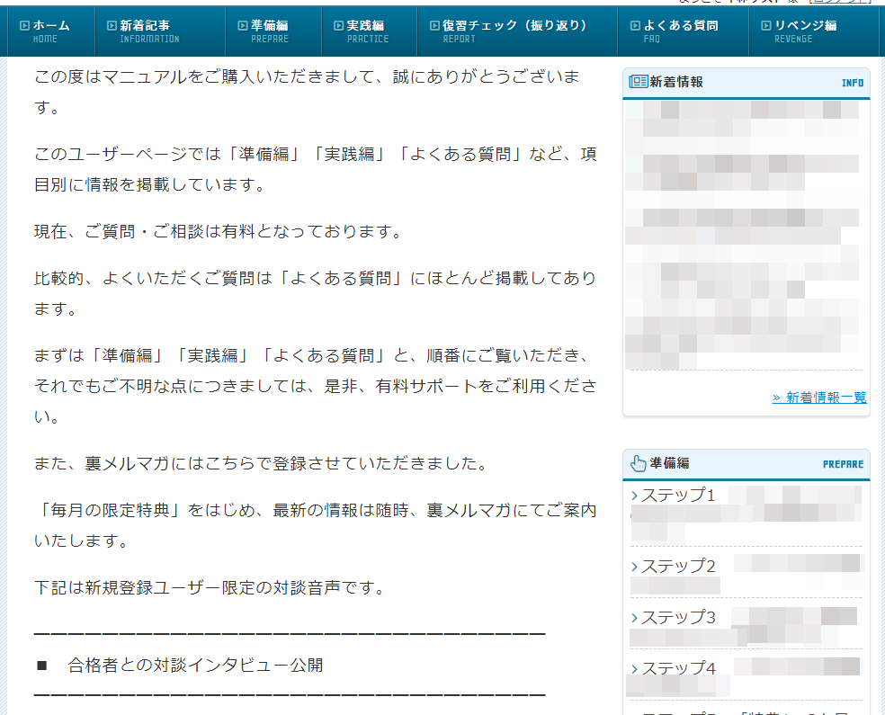 実際に勉強法(マニュアル)で合格した受験生の「合格体験記」のインタビュー音声も購入者限定ページから聴けます。