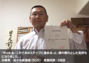 坂庭先生の「勉強しなきゃをやめてみよう」というアドバイスをしていただいて4回目の挑戦でしたが、自己採点で合格ラインギリギリでした。