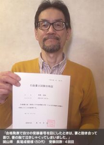 行政書士を目指そうと思った理由ですが、定年後再雇用での給料の下落があまりにも大きいことで、自立して収入を得られることをしたかったこと、父の相続に絡みかなり手間暇がかかったことで、今後増えるであろう市民法務関連の手伝いをすることで、ちょっとした手助けでも助けられる人が多くなるので、その一助になりたいと思ったこと。