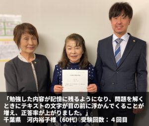 受験回数:3回目(合格勉強法購入後一発合格)