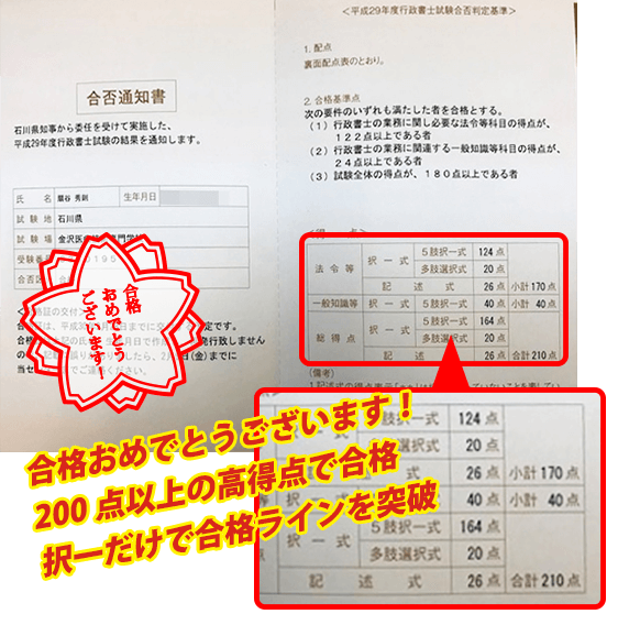 自己採点の時点で、記述以外の択一だけで合格点に行ったことがわかり、その時点で安心して合格発表を迎えることができた点は、大きかったです。