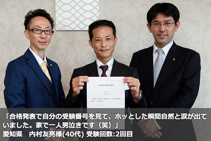 そんな中、先生方のホームページと出会い、今まで通信や予備校に通い続けていた方々が不合格で苦しみ、独学でこの勉強法を実践して合格した記事を読んだ時、私自身真剣に勉強方法を改善しなければ合格は不可能だと思っていた気持ちと重なり、先生方の指導法に興味をもち、その勉強法に賭けてみようと決断しました。