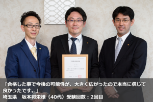 試験勉強期間中、ずっと支えてくれた家族への感謝の念は一生忘れません。そして初めて自分で自分を褒めました。