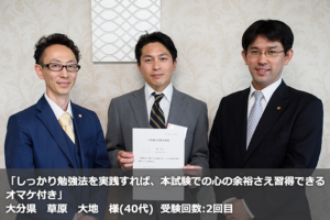 合格した瞬間については、正直、不合格を確信していたので、本年度の試験準備の矢先でした。そのため、試験センターのHPに自分の受験番号を見つけたときは、我が目を疑い何度見返しました。そして、驚きから安堵へと変わりました。